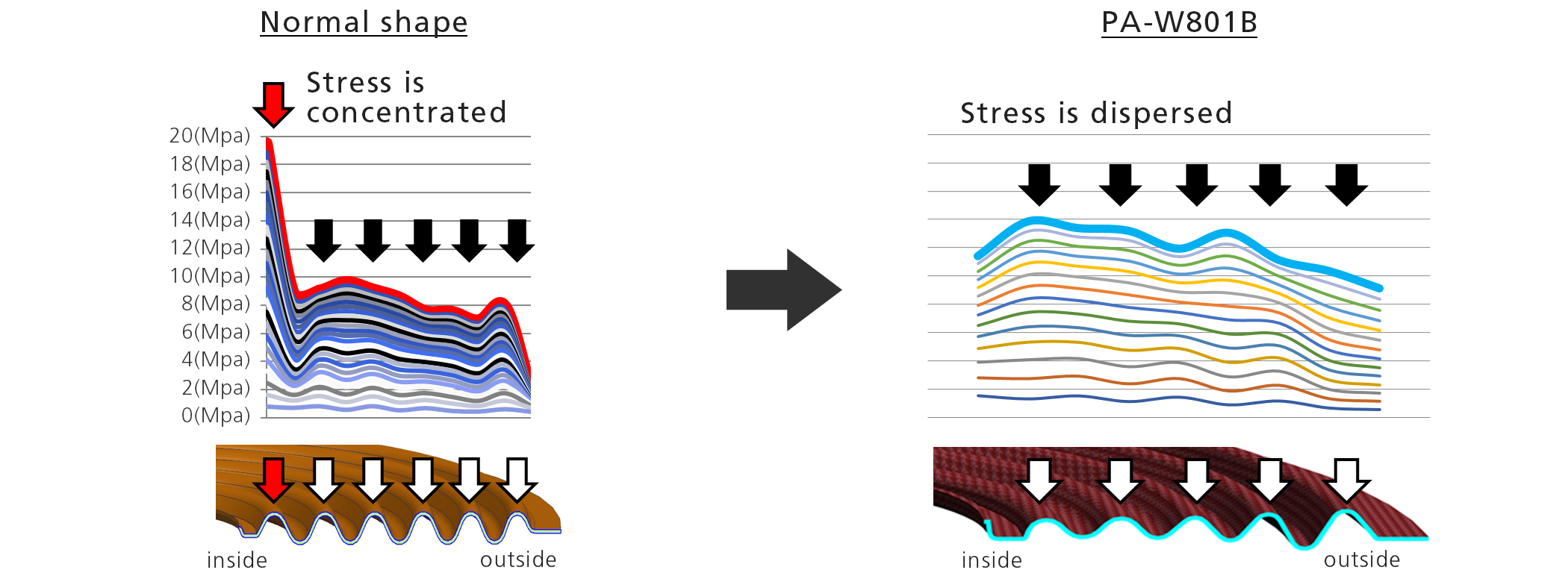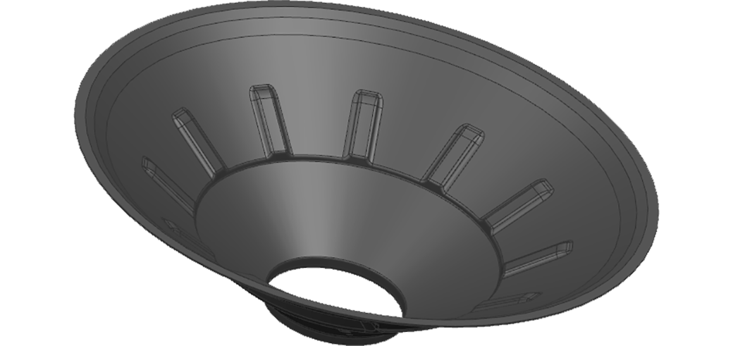 Reinforcing ridges are added to the cone for reduced distortion, resulting in better sound.