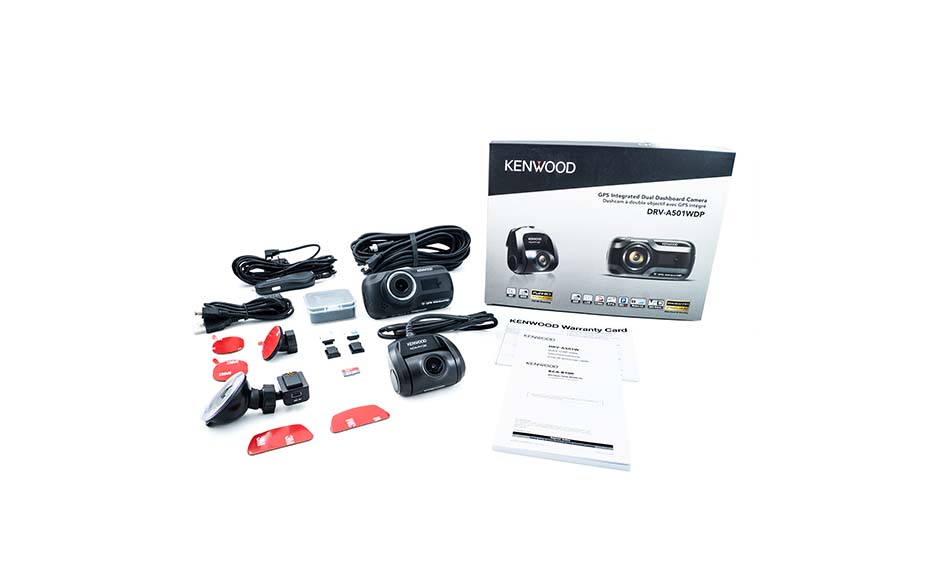 The DRV-A501WDP includes 2 dash cams: 1 to record in front of your vehicle and 1 to record behind your vehicle, all at the same time. The rear dash cam includes a 26’ cable that connects to the front dash cam, allowing it to easily be mounted to the rear windshield or anywhere else in the vehicle where you would like to record. When in Dual Camera Recording Mode, both cameras maximum recording resolution is 2.0 Megapixel (Full HD). Rear cam must be turned off in menu setting to enable front cam 3.7 Megapixel recording.