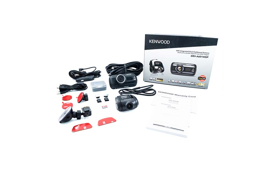 The DRV-A601WDP includes 2 dash cams: 1 to record in front of your vehicle and 1 to record behind your vehicle, all at the same time. The rear dash cam includes a 26’ cable that connects to the front dash cam, allowing it to easily be mounted to the rear windshield or anywhere else in the vehicle where you would like to record. When in Dual Camera Recording Mode, both cameras maximum recording resolution is 3.7 Megapixel (Wide Quad HD). Rear cam must be turned off in menu setting to enable front cam 8.3 Megapixel recording.