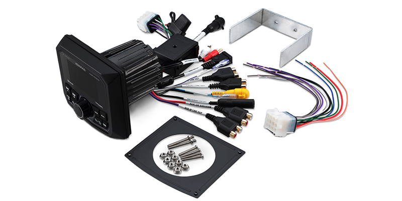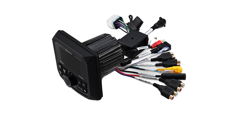 KMR-XM500 is equipped with a rear view camera input. With an optional camera connected, you have increased safety while driving UTVs, boats, etc..