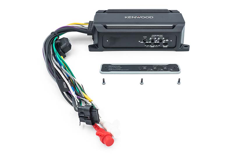 The KAC-M5024BT has RCA outputs to expand the system to connect to an additional amplifier or powered subwoofer. You can even control the output level from the remote control by pressing the PRE-OUT button, then turning the volume knob.