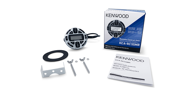 The KCA-RC55MR is designed to control KENWOOD Marine/Motorsports Receivers from multiple positions with LCD its display.