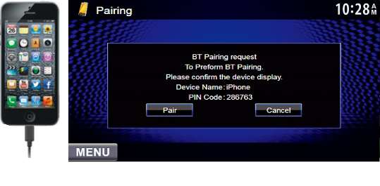Automatic Bluetooth pairing function for iPhone via USB is available on all built-in Bluetooth