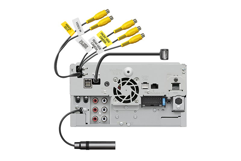 To enable a smarter driving experience, receivers featuring 4 camera inputs allow for the utmost in convenience, flexibility, and safety. With 4 camera inputs, you can connect a rear camera, side (blind spot) cameras, and a KENWOOD dashboard camera (DRV-N520 sold separately). Alternatively, 4 camera inputs can support several other configurations, including the connection of 2 side cameras, a front HD camera, and a rear HD camera (CMOS-740HD sold separately). Camera switching is available using on screen controls, or automatically for side cameras when an optional iDatalink Maestro RR is connected (supported vehicles only).