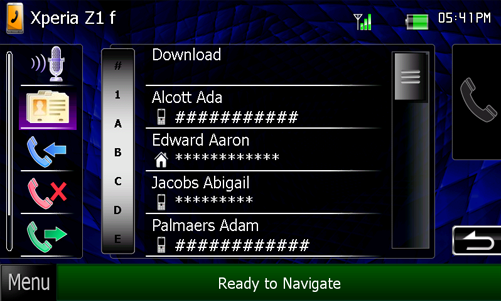 Access Phonebook, Last Calls, and Missed Calls from the receiver and make hands-free calls.