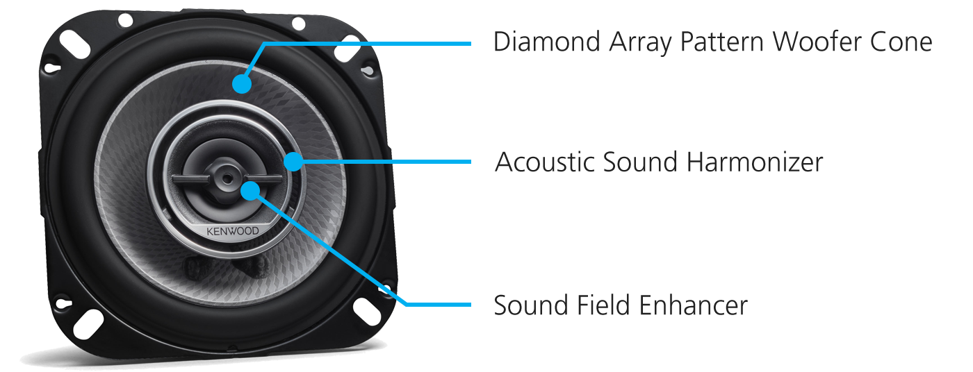 This unique shape of the tweeter creates strong frontward sound as well as a wider sound field in 5kHz and higher frequencies.