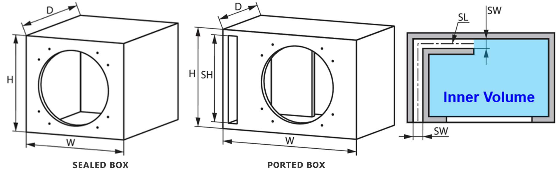 | Ported | 1.50 cft (42.5 liter) | 20" (508mm) | 14-1/4" (362mm) | 15-1/2" (394mm) | 1-3/8" (35mm) | 12-3/4" (324mm) | 29" (736mm) |