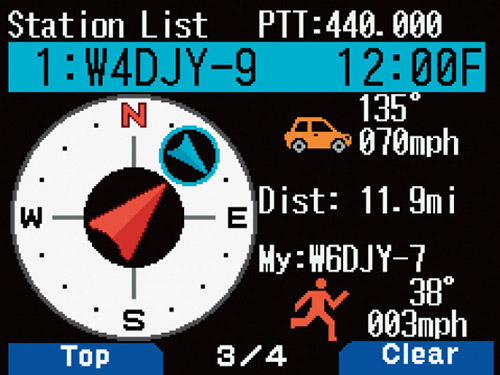 The TH-D75A is capable with a relative direction display that enables you to see at a glance real-time GPS information or pre-set information for your own station, and the distance/direction/heading/speed of other stations. It is now easier to recognize any position and heading relationships with your own station. Weather station information can be displayed in color for rainfall, temperature, wind direction/speed, barometric pressure, and humidity data.