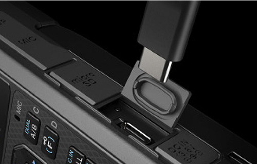 The unit features a USB Type-CTM port for data communication with PCs. And also for charging its genuine lithium-ion battery. Bluetooth (HSP, SPP) and microSD/SDHC memory cards are also supported.
